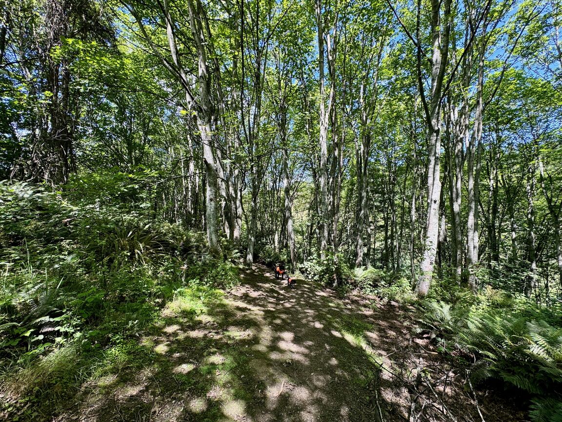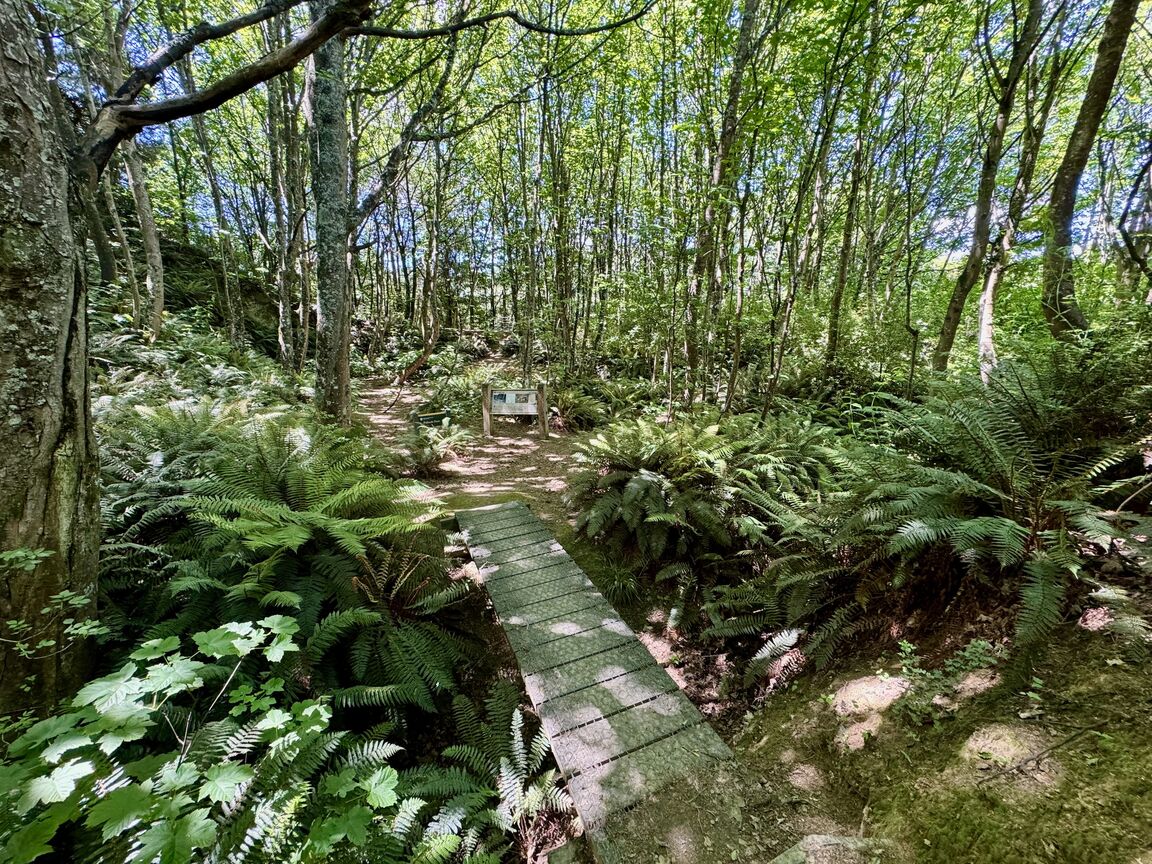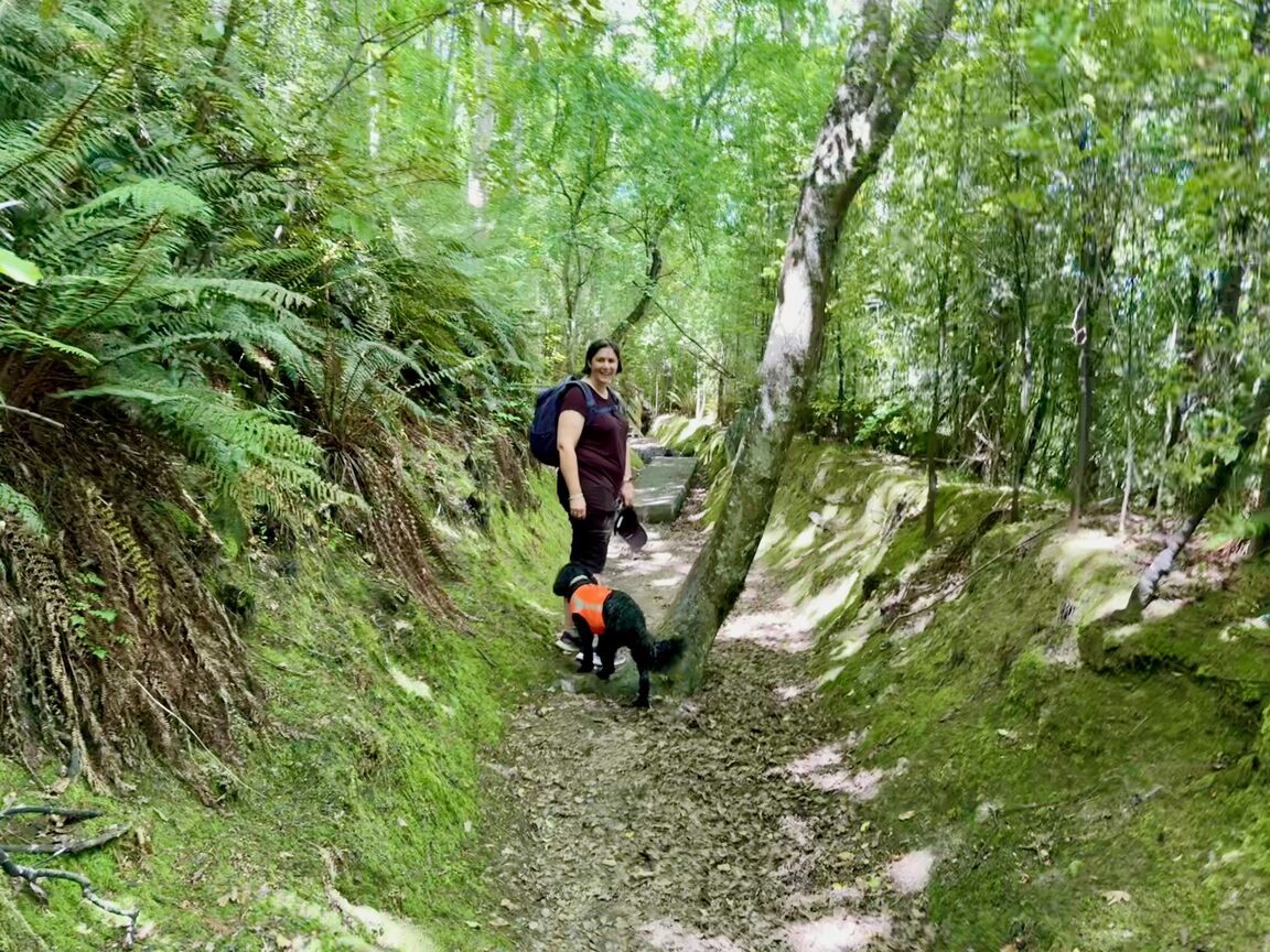 A short-ish uphill stretch to start the walk, but from there it's a very pleasant walk. There is a lot of historical information available to read around the track which makes it very interesting and informative.