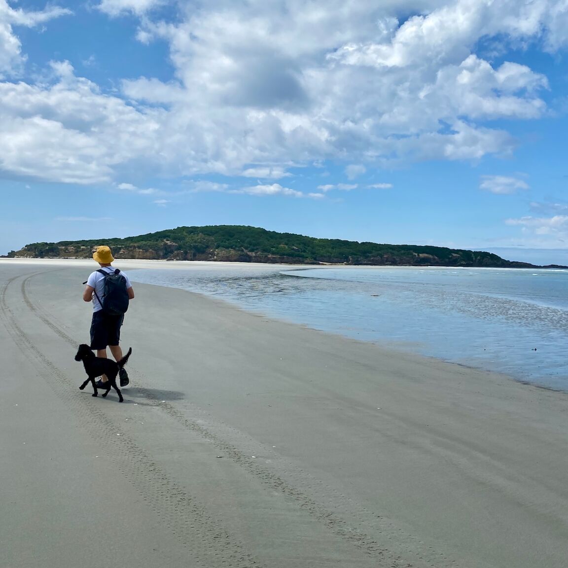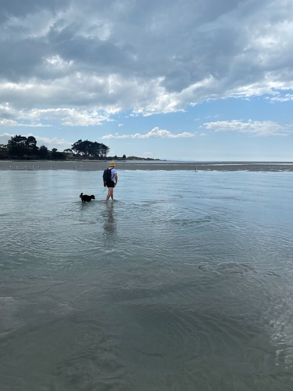 The island is about 1.2km offshore. Soon on the way out, we waded through water up to our thighs - nothing strenuous but it's not an easy walk. However, beyond that it was an easy beach walk to the island which Luna loved.