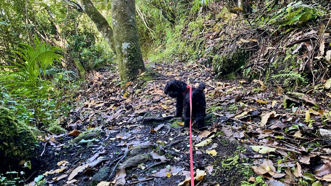 The track is a typical NZ bush style path - tree roots, leaves, a bit of mud - not for baby-buggies.