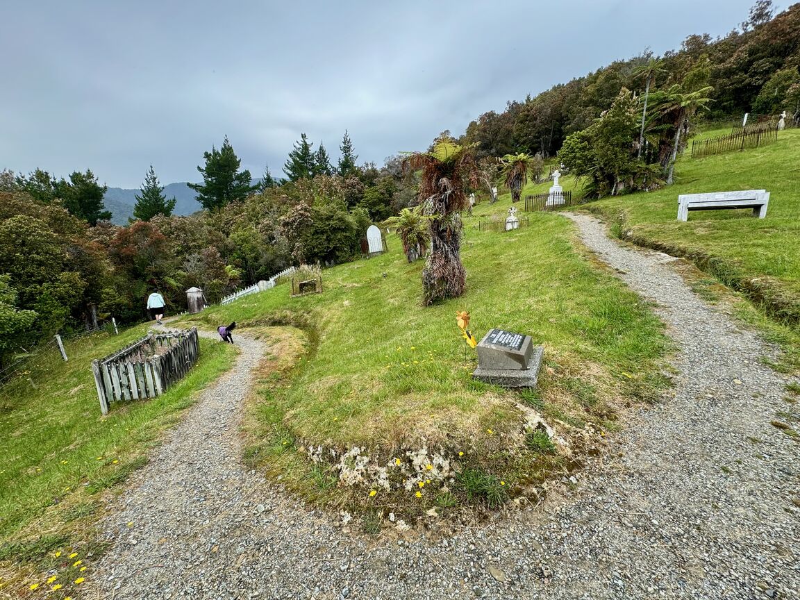 The path is wide and well-formed and the area is very scenic. The track climbs up to an old historical gold-era water race which is amazing to see. There's a replica hut and the original Ross Cemetery.